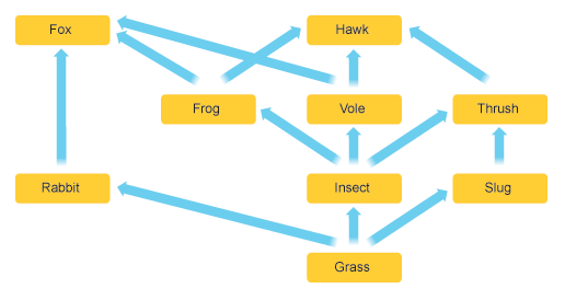 | Grass | → | Grasshopper | → | Frog | → | Hawk |